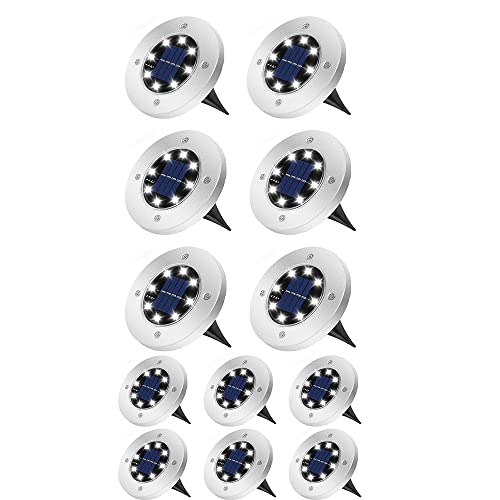 Generic - Solar Ground Lights, Solar Garden Lamp Disk Lights Waterproof In-Ground Outdoor Landscape Lighting for Patio Pathway Lawn Yard Deck Driveway Walkway (White Light) (12)