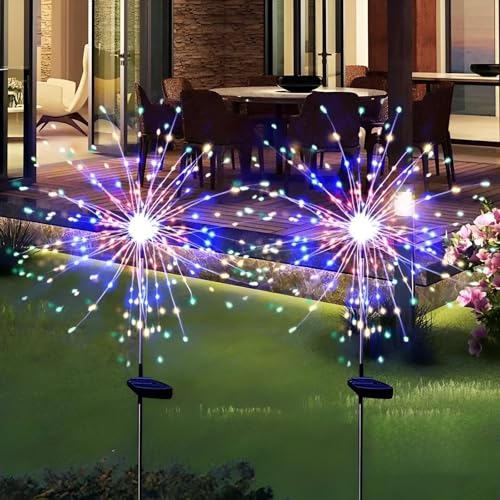 Generic - مصابيح خارجية تعمل بالطاقة الشمسية مع LED، تضيء تلقائياً عند حلول الظلام، مقاومة للماء، مناسبة للحدائق والفناءات والتراسات، تصميمات جديدة لعام 2025 (موديل النجم الملون, 2)، متعدد الألوان