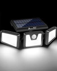 Generic - مصابيح امان خارجية تعمل بالطاقة الشمسية مع مستشعر حركة، 128 مصباح LED، 3 رؤوس قابلة للتعديل، تغطية زاوية واسعة 270 درجة، مقاومة للماء IP65