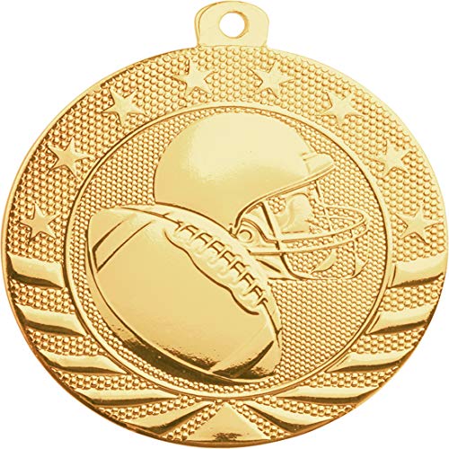 - 10- Pack of 2" Diameter Die-Stamped Solid Metal Football Medal Awards