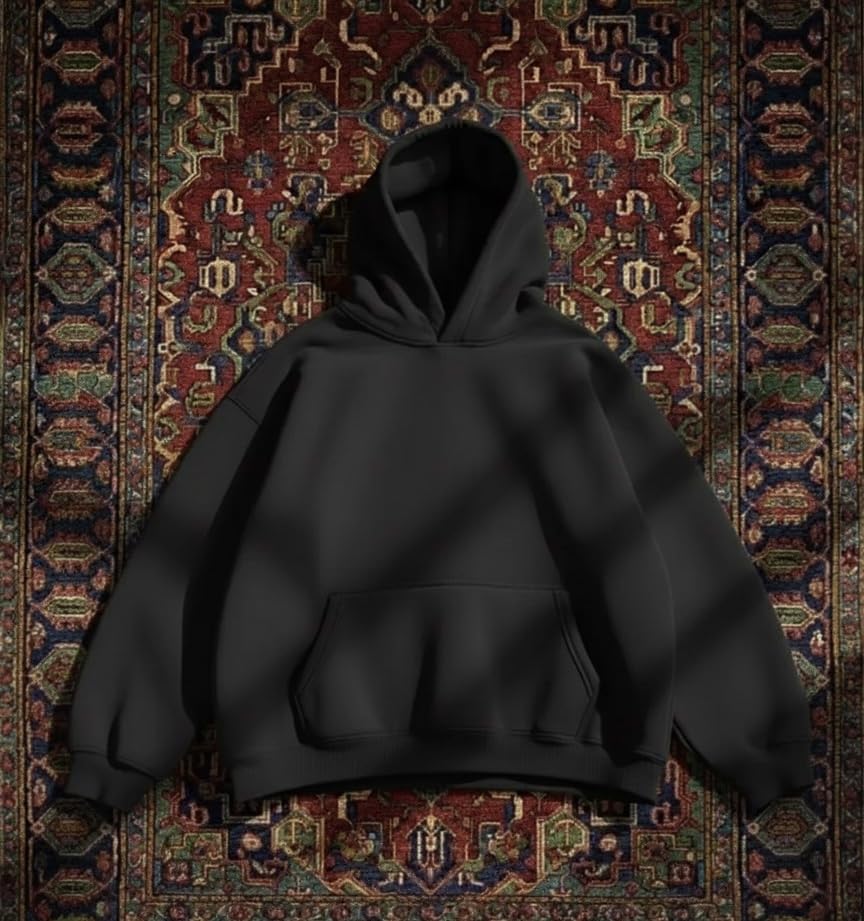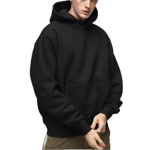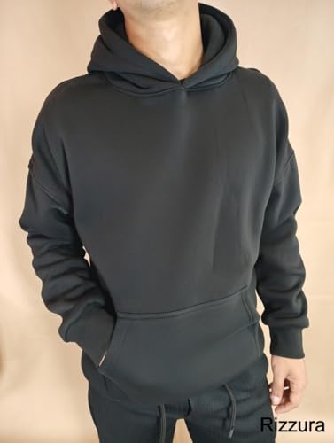 Generic - Solid Oversize Quilted Winter 100% Cotton Hooded Sweatshirt (Capicchu) With Front Pockets