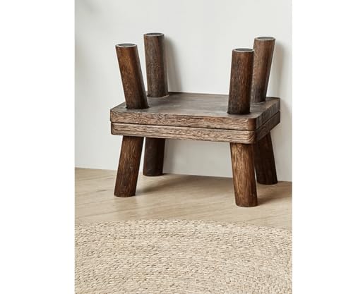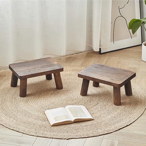 TEMIREN - Solid Wood Step Stool with Non-Slip Rubber feet, Short Stool for Bedroom, Kitchen and Living Room Shoe Changing Step Stool, Sturdy and Durable, no Assembly Required (recarbonisation)