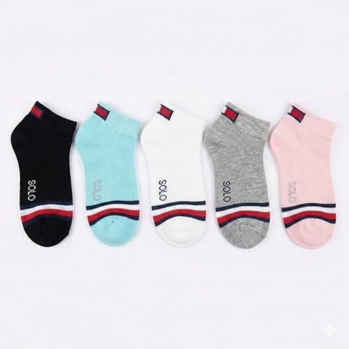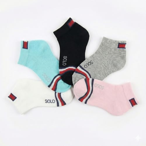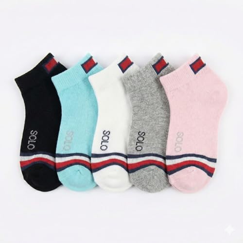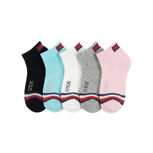 SOLO - Solo Kids Ankle Cotton Socket Socks, Striped Design, Multi-Color Pack, Cotton, 5 Pairs