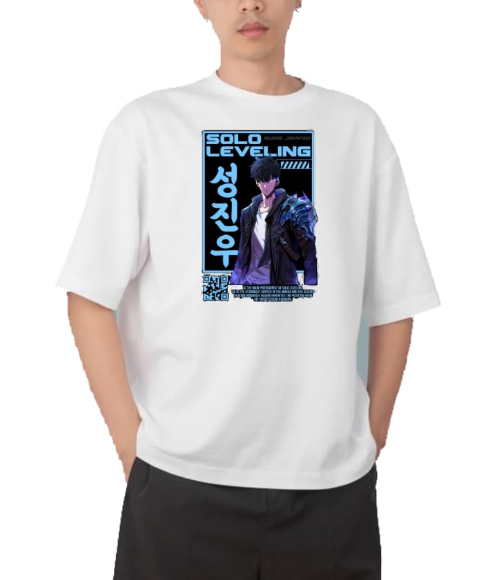 Generic - تي شيرت سولو ليفلينج باللون الابيض الحمضي الرمادي Sung Jinwoo 4