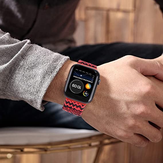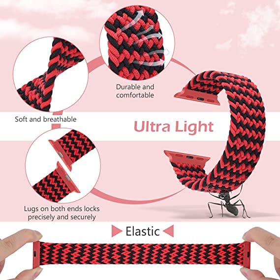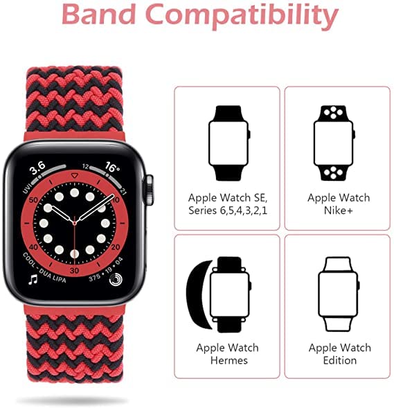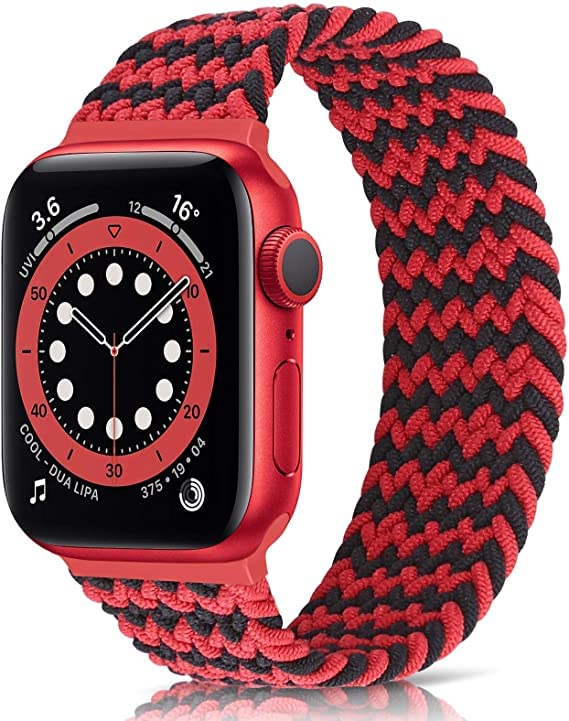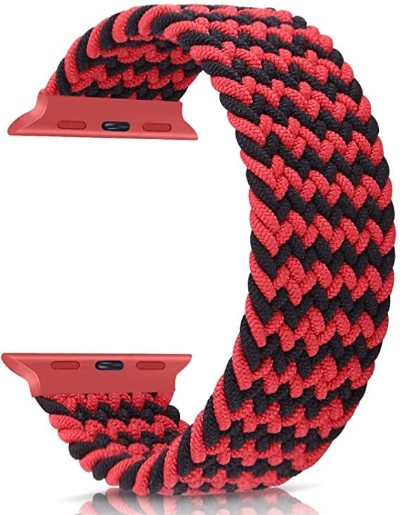 Generic - Solo Ring Fabric Braided Rubber Band for Apple Watch Series 1/2/3/4/5/6/7 (L, Red Wave, Black, 38/40/41mm)