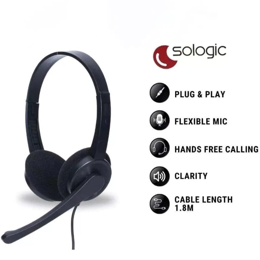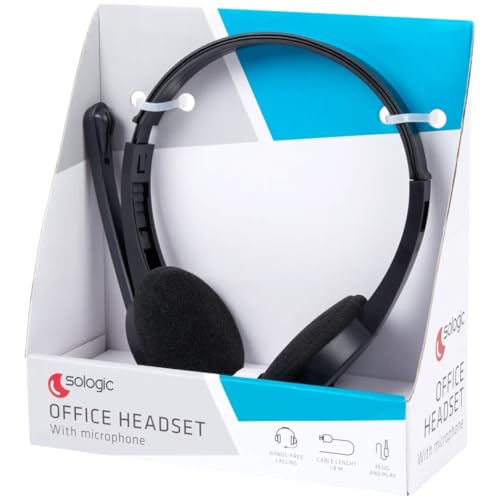 Generic - سماعة مكتبية من سولوجيك فوق الأذن، مزودة بميكروفون مانع للضوضاء، كابل طويل 1.8 متر، منفذ 3.5 ملم مفرد، مناسبة لمراكز الاتصال والكمبيوتر الشخصي واللاب توب، والموبايل