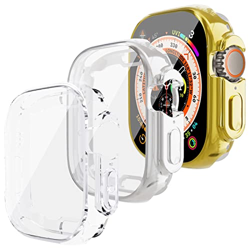 SOLOLUP - SOLOLUP 3 Pack 49mm Case for Apple Watch Ultra 49mm, Ultra-Thin Full Coverage TPU Case for iWatch Ultra 49mm Shockproof & Scratch Resistant Cover for Apple Watch Accessory, Clear/Silver/Gold