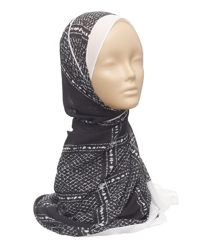 SOLY - سكارف كريب شيفون مطبوع مقاس 190×75 سم للنساء - اسود وابيض