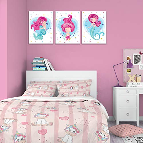 Something Unicorn - لوحات جدارية من شيء يونيكورن، لوحة فنية لغرفة النوم بتصميم حورية البحر اللامعة، مقاس 30.48 × 40.64 سم، مجموعة من 3 قطع