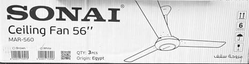 SONAI - Sonai Ceiling Fan 56'' 5 speed settings, 3 blades, 75 Watt, MAR-560 White (3 piece)