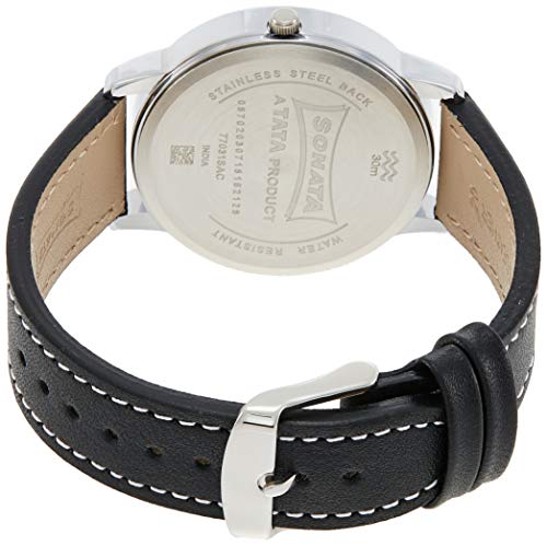 Sonata - Sonata Watch for Men, Automatic Movement, Analog Display, Black Leather Strap-NM77031SL02