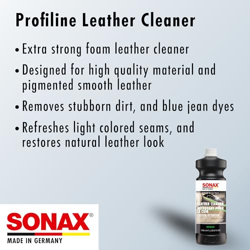 SONAX - SONAX Profiline Leather Cleaner | Professional-Grade Deep Cleaner for Smooth Leather | Removes Stubborn Dirt, Grease & Blue-Jean Stains | Fast-Acting & Safe for Most Leather Surfaces | 270300 | 1L