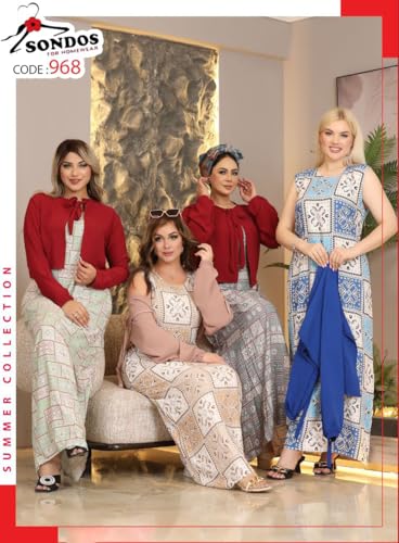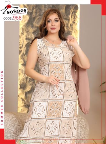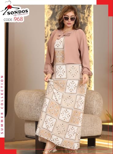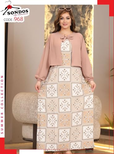 SONDOS FOR HOMEWEAR - فستان ماكسي من مجموعة الصيف من سوندوس، طباعة هندسية، قطن فسكوز، مقاس كبير، من 60 إلى 80 كيلو