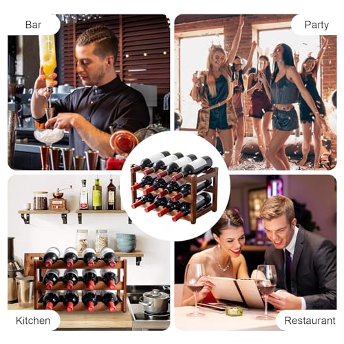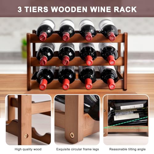 Sonhomay - رفوف مشروبات لسطح الطاولة من سونهوماي، حامل زجاجات قائم بذاته 12 زجاجة، منظم زجاجات المياه من 3 طبقات، رف حامل خشبي للمطبخ والبار وخزانة المؤن