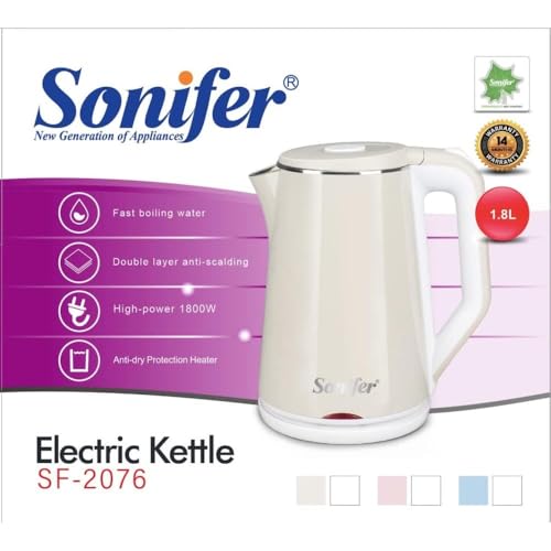 Sonifer - غلاية كهربائية من سونيفر، سعة 1.8 لتر من الفولاذ المقاوم للصدأ، غلاية ذكية للمطبخ والشاي، قطعة واحدة، موديل SF-2076