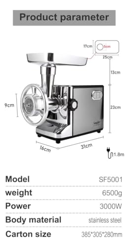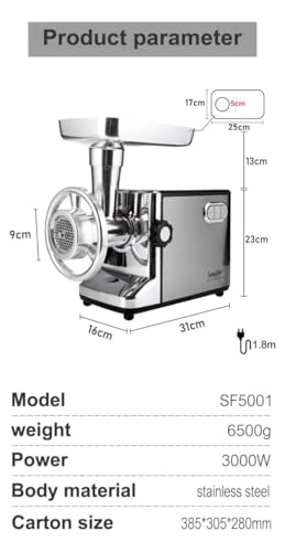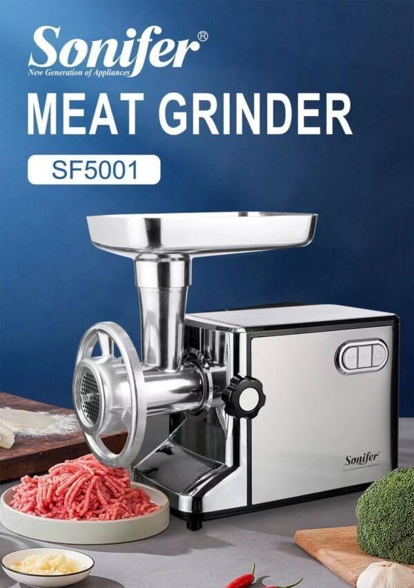 - High-Efficiency Grinding: The Sonifer Stainless Steel Meat Grinder is equipped with a powerful motor that ensures quick and efficient grinding of meats, making it ideal for preparing homemade sausages, burgers, and meatballs.