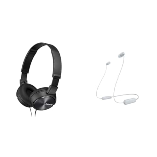 Sony - Sony Back to School Essentials: MDRZX310AP On-EarHeadphones with mic -Black & WI-C100 Wireless In-Ear Headphones -White