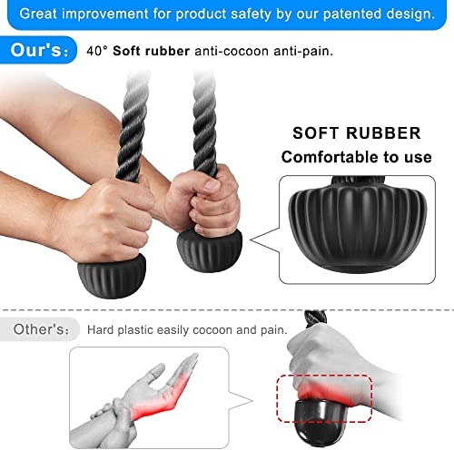 - SOFT RUBBER ENDS: Our Tricep Pull Down Rope is designed with soft rubber blocks at the end, using 40 ° soft plastic materials to help you get better comfort in training and protect your hand.