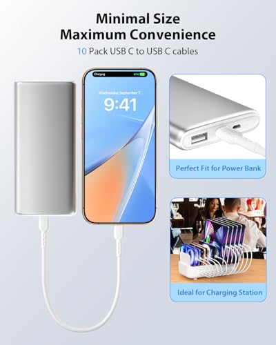- سوبي 10 قطع من كابلات USB C إلى USB C، ملحقات محطة شحن CS101 ذات 10 منافذ (ابيض)