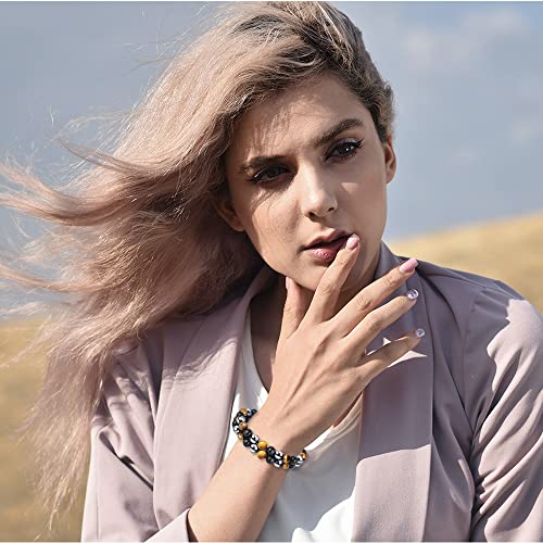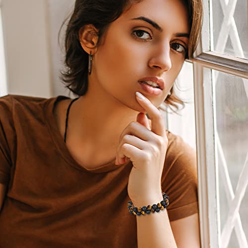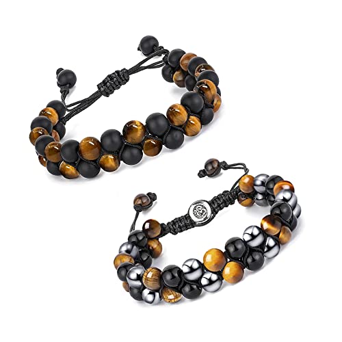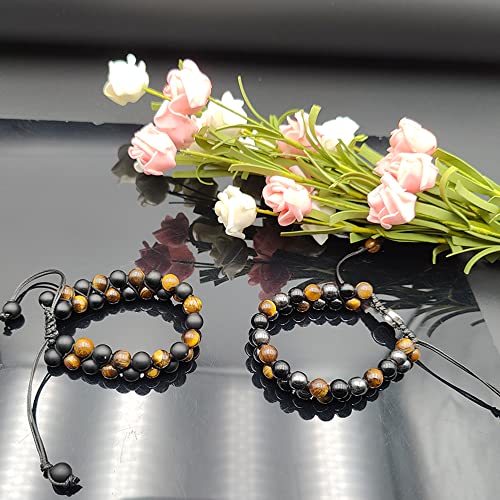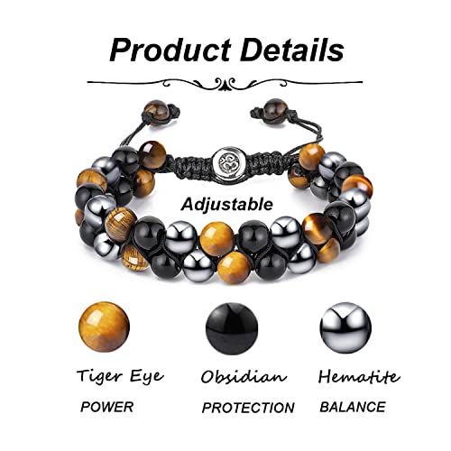SOOWOOT - SOOWOOT 2Pcs Triple Protection Bracelet - Tiger Eye & Obsidian & Hematite Bracelet Healing Crystal Gemstone Bracelet to Bring and Protect Good Luck and Prosperity for Men Women