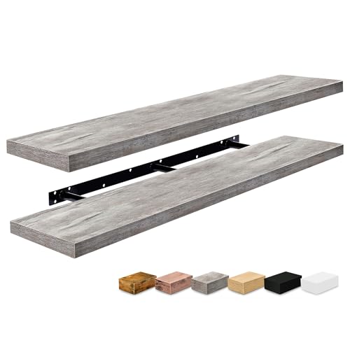 Sorbus - سوربوس ارفف عائمة للحائط - ارفف حمام طويلة للغاية 55 انش، ديكور حائط لغرفة النوم والمطبخ وغرفة المعيشة وتخزين الكتب - رف عائم مثبت مع دعامات مخفية (رمادي، عبوتان)