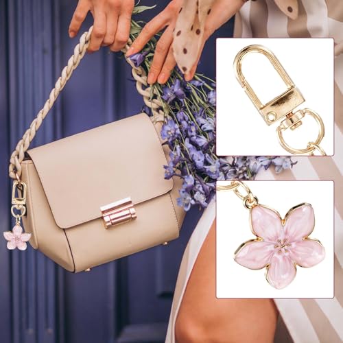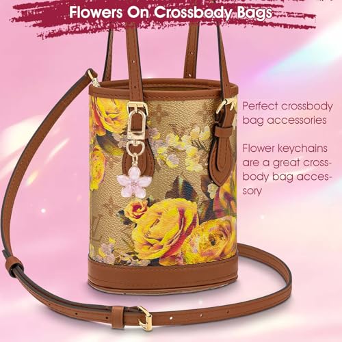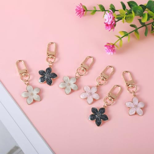 Sorcristy - Cute Flower keychains for Women, Flower Bag Charms Enamel Keychain for Handbag Purse Elastic Car Key Holder Bangle Fashion Keychain Accessories Gift for Women Girls(6PCS)