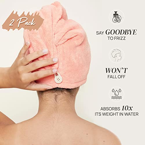 - 👩EXTRAORDINARY DESIGN - The microfibre hair towel design is suitable for all types and lengths of hair. It is also suitable for children and adults of all ages. From long to short, straight or curly, thick or thin everyone will be able to enjoy the benefits our bath towels can offer!