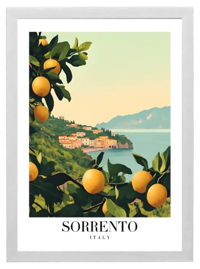 Sorrento Italy Coastal Art Print with Premium Wood Frame, Mediterranean Lemon Grove Scene. (White, 30 * 40, Framed)