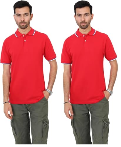 Sotex - Sotex Men's Polo Shirt With Colar Strip,Red, 2X Large (Pack of 2)