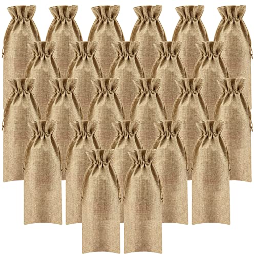 SOUJAP - SOUJAP 24 Pack 6 x 14 Inch Jute Wine Bags, Burlap Wine Bags with Drawstring, Hessian Wine Bags for Wine Tasting Event, Birthday, Wedding, Paper Tags Included