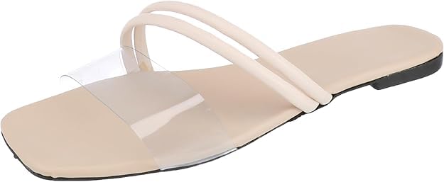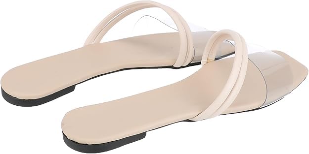 SOUL 2 SOLE - Combined transparent× faux leather flat comfortable slippers,BEIGE,40