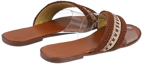 AUUXVA - SOUL 2 SOLE Flat soft paded slippers,handmade tabular criss cross strap× transparent strap,GREEN,39