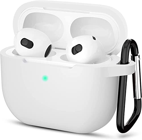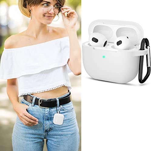 Sounce - Sounce Air Pods 3 Case Cover with Keychain Neck, Protective Silicone Case Skin Compatible with Air Pods 3rd Generation (2021 Released), Shockproof, Supports Wireless Charging [White]