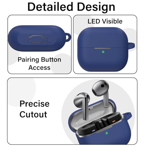 Sounce - Sounce Earphone Case Cover for Samsung Galaxy Buds 3 Pro and Galaxy Buds 3 TWS Soft Silicone Skin Case Cover Shock Absorbing Protective Case with Keychain [Front LED Visible] - Blue