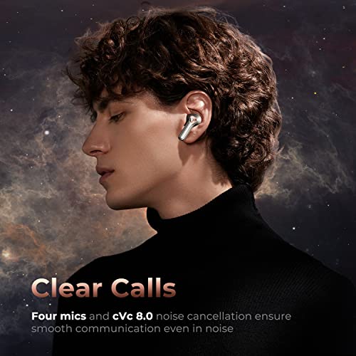 - [CVC Noise Cancellation & 4 Mics] - H2 wireless earphones are built-in with four mics and cVc 8.0 noise cancellation algorithm to eliminate environmental sound and catch your voice accurately to optimize the performance and ensure smooth communication on games, videos, and calls. The balanced and detailed sound from the earbuds is with top tier clarity.