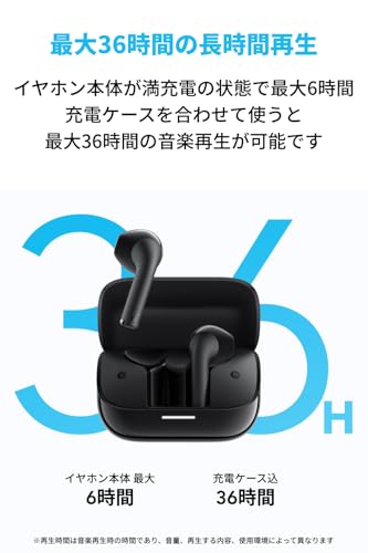 - Up to 36 hours of playback: Up to 6 hours when the earphones are fully charged, and the charging case can be used for up to 36 hours of music playback. In addition, it supports short charging for approximately 2 hours of playback with a 10 minute charge