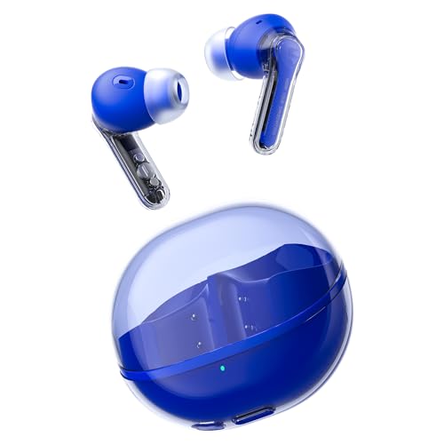 SoundPEATS - SoundPEATS Clear Bluetooth 5.3 Earphones, 12mm Driver Powerful Sound, Dual-Mic ENC for Clear Calls, Wireless Earbuds for Andriod/iPhone, App Custom EQ, Audio Headphone 40Hrs, Transparent Design (Blue)