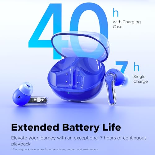 - [Ultra-Long Playback Time of 40 Hours] Enjoy an impressive total playback time of 40 hours and extended battery life. Each charge provides up to 7 hours of uninterrupted music, and the charging case offers an additional 40 hours, allowing you to listen to your favorite music throughout the entire day without the need to worry about recharging. Bid farewell to interruptions and immerse yourself in the music.