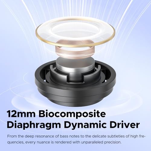 - [12mm Bio-Composite Diaphragm Dynamic Drivers] Thanks to the 12mm bio-composite diaphragm drivers of SoundPEATS wireless headphones, you can enjoy a world of sound in these small earbuds. The generous dynamic range of the driver creates impressive resonance and reproduces even the finest details of millions of music pieces. Immerse yourself in a sonic landscape full of nuances and experience the fascination of music in an entirely new way.