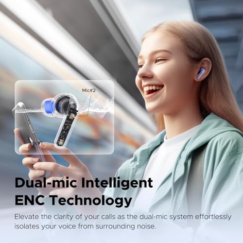- [Dual-Microphone Intelligent ENC] SoundPEATS Clear is equipped with dual-microphone noise-cancellation technology. This allows for the efficient elimination of disruptive ambient noises during calls, ensuring clear and smooth phone conversations. Whether you are at an airport, a train station, or amidst busy street traffic, you can forget about annoying background noise and enjoy a clear, unadulterated conversation experience.