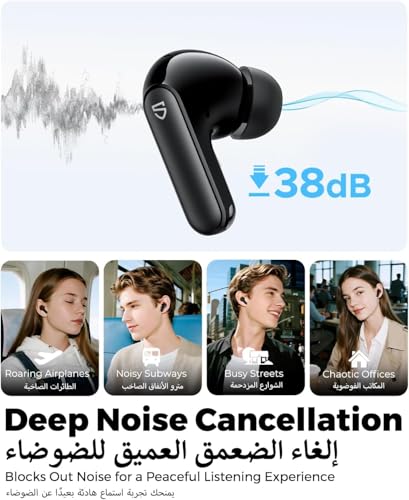 SoundPEATS - ساوند بيتس سماعات اذن بلوتوث كيو 3 برو مع 38 ديسيبل ايه ان سي، مشغلات 13 ملم مع سماعات اذن لاسلكية باس قوية، سماعات بلوتوث 6.0 بخاصية الغاء الضوضاء، 42 ساعة، 4 ميكروفونات بتقنية الذكاء الاصطناعي اي ان