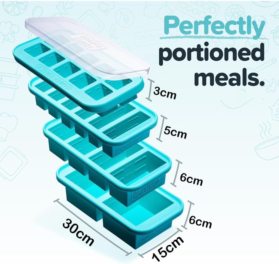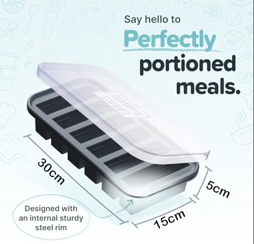 - SAVE TIME AND MONEY BY MEAL PREPPING: Spend less time thinking about what you're going to eat and more time enjoying it. Our silicone portion freezing trays are designed to make meal prep a breeze. The silicone freezer trays with lids are made from 100% pure platinum food-grade safe silicone with a steel-reinforced top and a convenient lid.