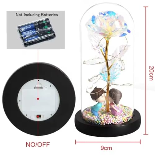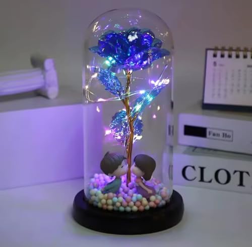 SOUQ KADO - SouqKado Artificial Rose Flower with LED Light Up Galaxy Rose Colorful Glass Rose Flower for Mothers Day Valentine's Day Anniversary Gifts for Girls Multiple Shapes Inside (Blue, Black)