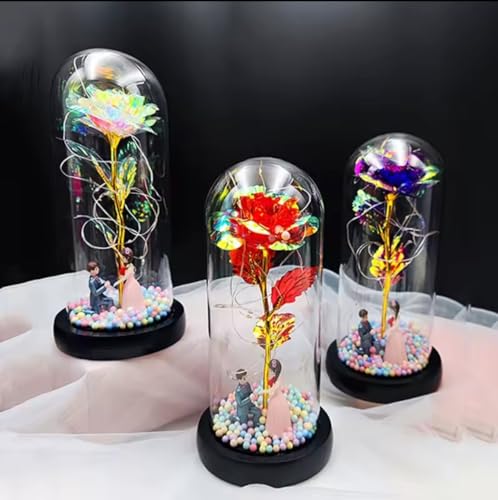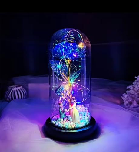 SOUQ KADO - SouqKado Galaxy Rose Colorful LED Glass Rose Flower for Mother's Day Valentine's Day Wedding Anniversary Birthday Gifts for All Girls (Blue, Black)