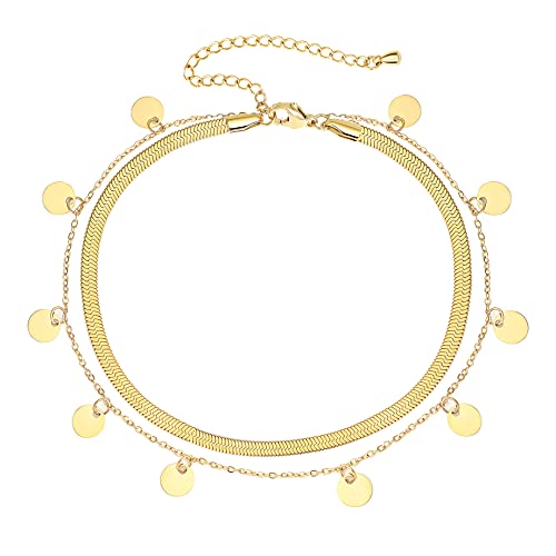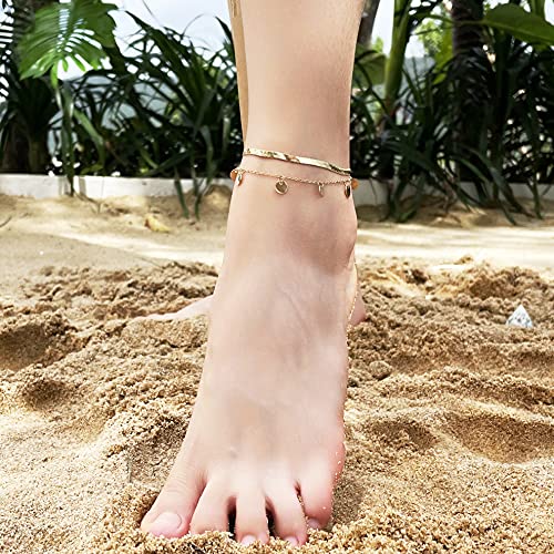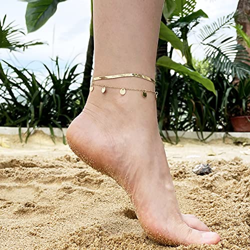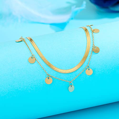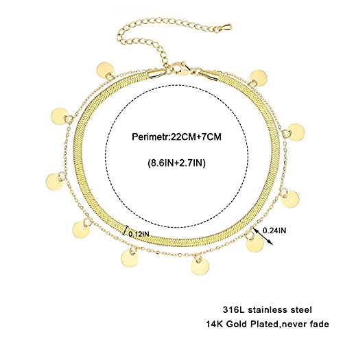 sovesi - sovesi Gold Ankle Bracelets for Women Stainless Steel Flat Snake Chain Link Gold Anklet Dainty Beach Anklets for Women, Stainless Steel, stainless steel