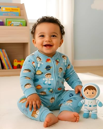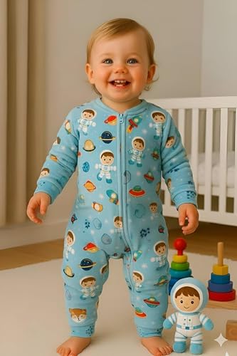 Generic - Space Baby Outfit - Blue Footed Pajamas with Astronaut Design, Full Sleeves, and Zip-Up Closure for Comfort and Convenience