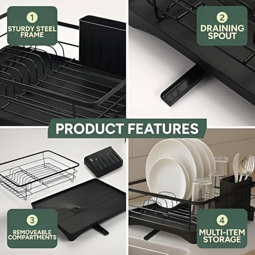 • Its low-profile, modern design fits seamlessly into any sink, maximizing countertop space by eliminating the need for bulky drying racks—ideal for small kitchens where every inch counts.