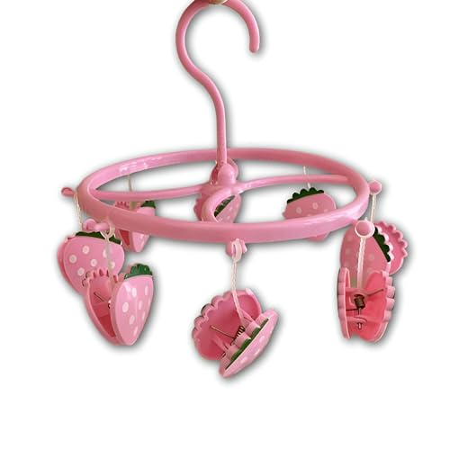 - The product is a small and cute laundry drying hanger, designed to be lightweight yet durable. It features 8 clips and comes in a charming pink color with a strawberry design, making it an attractive addition to your laundry routine.