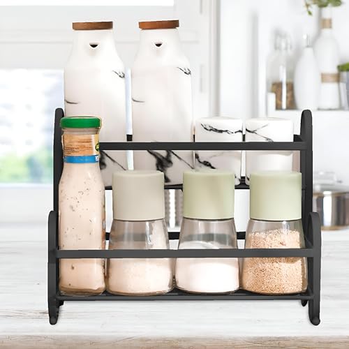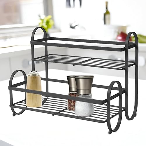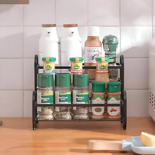 - 【First Choice for Kitchen】 your Kitchen, a 2-tier spice rack is both useful and attractive. gives you additional cupboard space and looks adorable in the kitchen. It is a useful assistant in your kitchen.