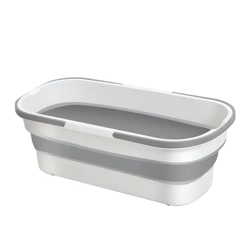 - The large, foldable mop bucket is perfect for home cleaning, camping, and recreational vehicles, offering an impressive 18-liter capacity. With a diameter of 52 cm and a height of 20 cm, it is ideal for various cleaning tasks ensuring a clutter-free experience when in use or stored.